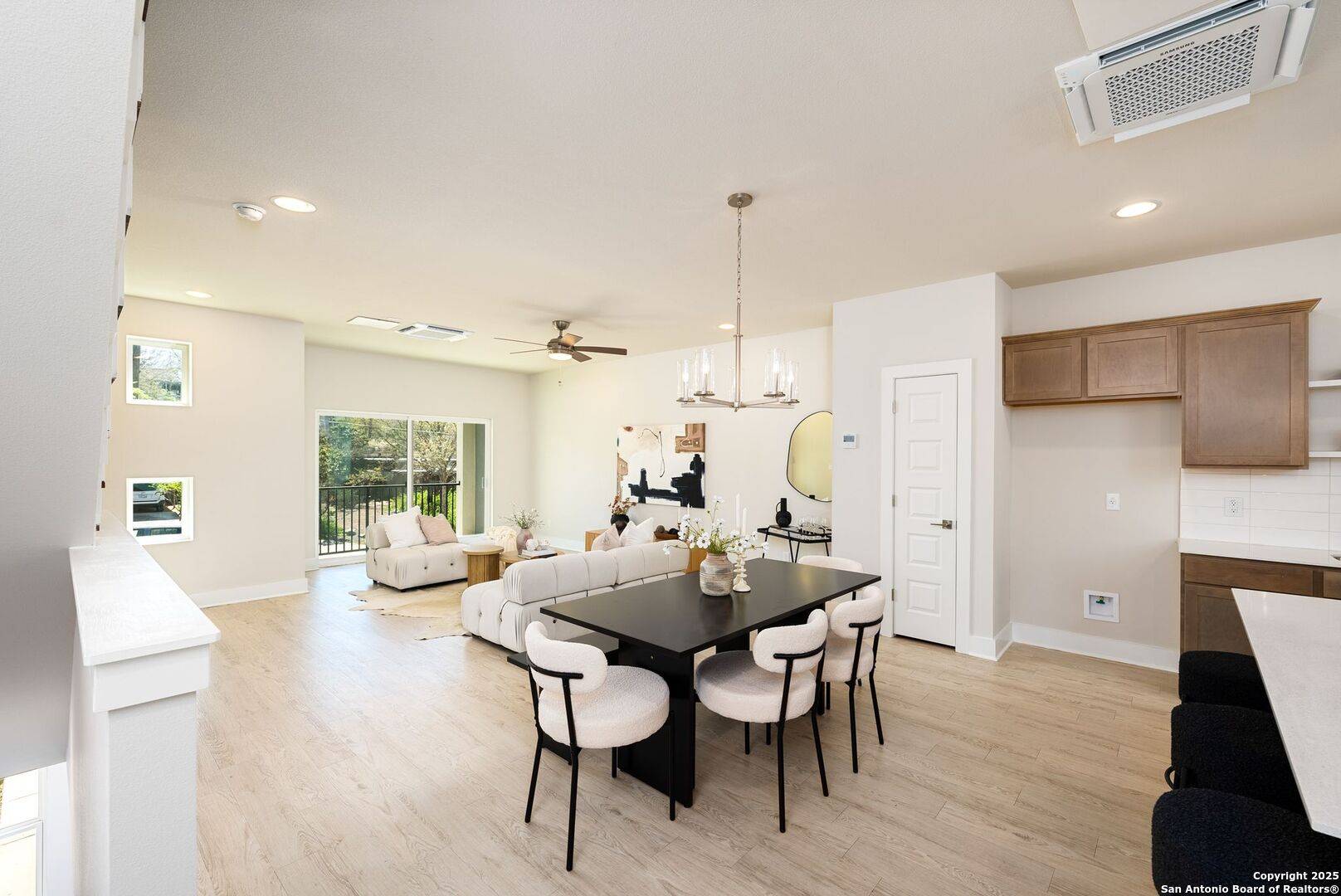 Experience modern living in this stunning NEVER LIVED IN 3-story townhome in San Antonio's vibrant Mahncke Park neighborhood. This exceptional residence offers functionality and convenience with updated finishes, contemporary fixtures, and ample natural light. The open-concept second level is perfect for entertaining, featuring combined living, dining, and kitchen areas. Enjoy the convenience of a 2-car garage and nearly 1900 sqft of modern comfort, offering views and serene cul-de-sac tranquility. This corner unit includes 3 bedrooms, each with a bathroom, plus a half bath. The main floor features a bedroom with a walk-in closet and en-suite bath. The second level boasts a chef-friendly kitchen and living space extending to a balcony, while the top level reveals two bedrooms, including a master suite with a private balcony. Just steps from the Broadway corridor and The Pearl Brewery, this unit combines city life with tranquility.