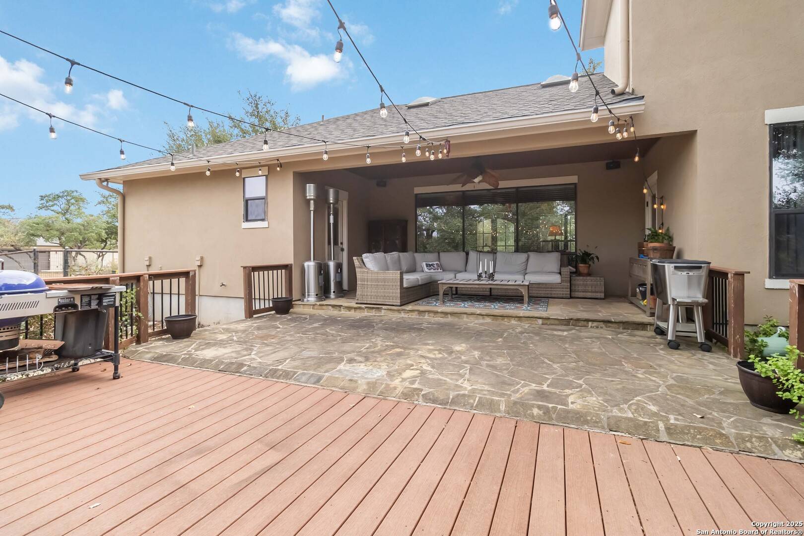 Luxury Hill Country Living on 1 Acre in Mountain Springs! This beautiful 2-story home captures the charm and serenity of Hill Country living with modern comfort and style. Featuring 3 bedrooms, 2.5 baths, and soaring high ceilings, the open floor plan offers bright, inviting spaces throughout. The primary suite is privately located on the main level, while the upstairs includes two additional bedrooms and a spacious game room. Enjoy true indoor-outdoor living with covered porches both upstairs off the game room and downstairs off the kitchen-perfect for relaxing or entertaining. The large backyard features an expansive deck and plenty of room to gather, play, or simply take in the peaceful views. With fresh interior paint, updated kitchen pulls, and a recently replaced roof (less than 2 years old), this home is move-in ready and full of thoughtful updates. Located in the sought-after Mountain Springs subdivision, residents enjoy wonderful community amenities and the best of Texas Hill Country living.