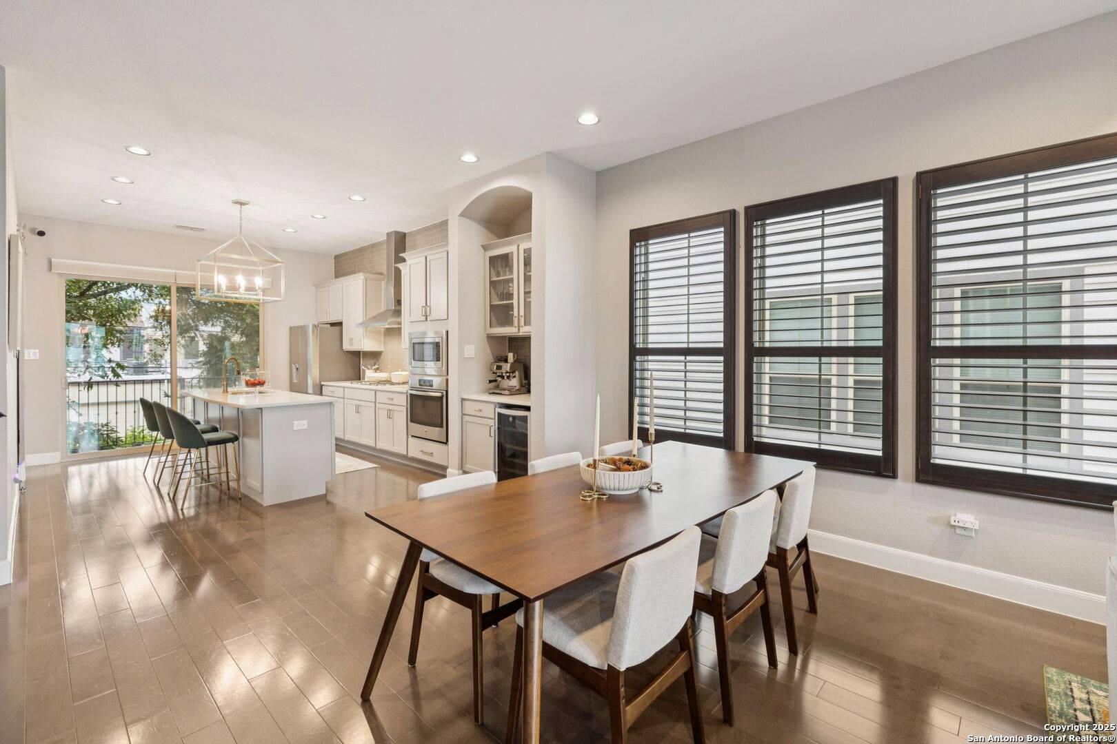 Stunning interior design and custom upgrades define this lock-and-leave Olmos Park townhome built in 2017, offering 3 bedrooms, 3 full baths, and 1 half bath. The open-concept living, dining, and kitchen space features wood flooring, quartz countertops, gas cooking, two wine fridges, and shutters throughout. The primary suite includes a coffee bar, dual vanities, separate shower and soaking tub, and a large walk-in closet. Each secondary bedroom offers an en-suite bath for privacy and convenience. Off the kitchen, a balcony overlooks the yard; on the ground level, a large patio with built-up grill opens to landscaped greenspace with sprinkler system, ideal for low-maintenance outdoor living. A two-car attached garage provides secure parking and storage. Located in the historic enclave of Olmos Park, this residence combines neighborhood charm with easy access to San Antonio's most popular destinations. Rose Hip Market is just 0.3 mile (6 min walk) for fresh groceries, and Olmos Pluma Coffee Bar sits 0.9 mile away (18 min walk) for morning coffee. The San Antonio Zoo and Brackenridge Park are 1.0 mile (20 min walk), offering nearby recreation and green space. Within minutes, enjoy the Alamo Heights Dog Park (2.1 mi / 7 min drive) or explore dining and shopping at The Pearl District (2.6 mi / 9 min drive). The Methodist ER Alamo Heights (2.1 mi / 6 min drive) and San Antonio International Airport (5.1 mi / 12 min drive) provide everyday convenience for travel and healthcare access. Zoned to Alamo Heights ISD, this beautifully appointed home delivers refined design, thoughtful upgrades, and a connected, low-maintenance lifestyle in one of San Antonio's most desirable neighborhoods.